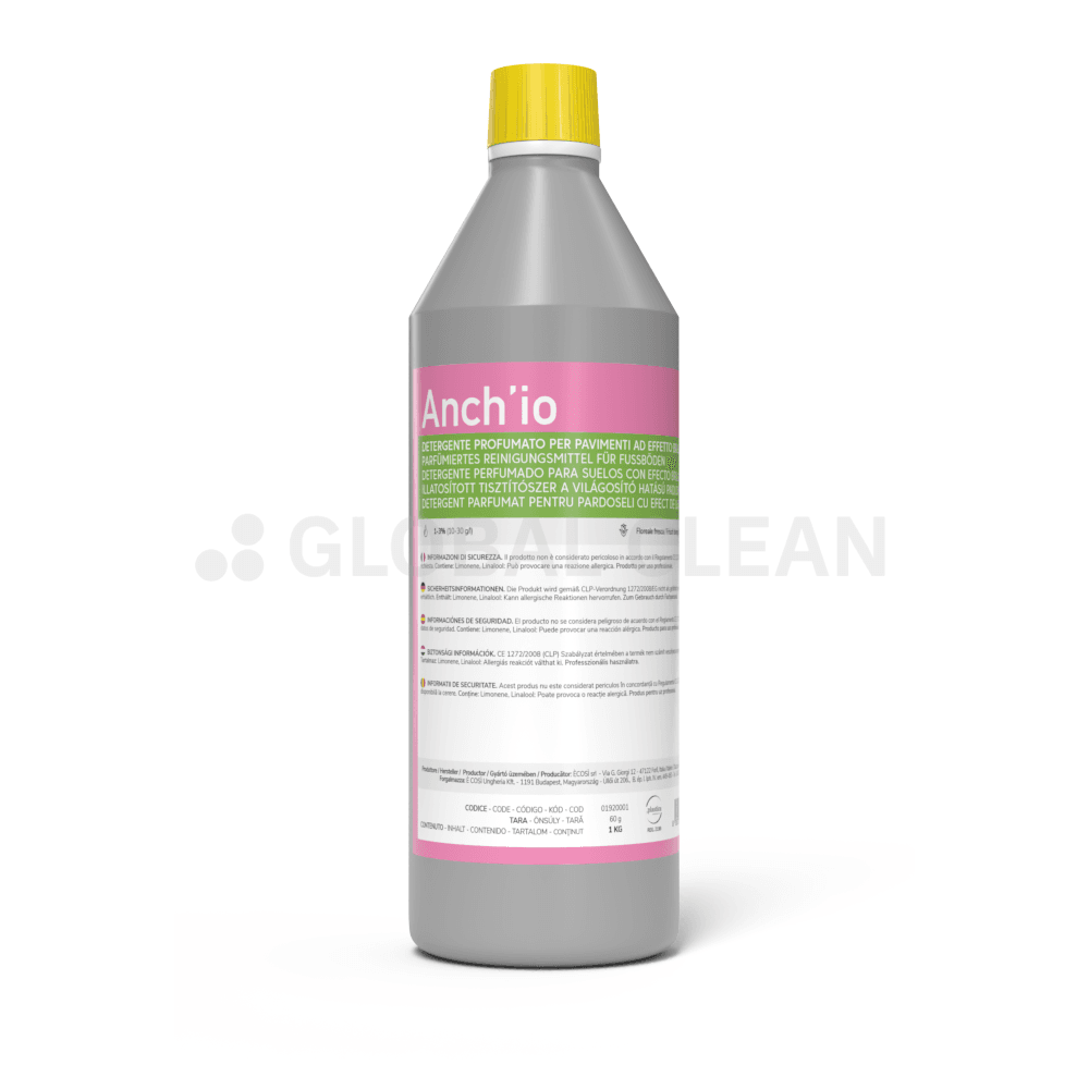 ANCH’IO è un detergente adatto alla manutenzione di tutti i tipi di pavimenti anche trattati a cera. La sua formulazione innovativa rende perfettamente pulito e brillante il pavimento, lasciando nell’ambiente un persistente e gradevole profumo.