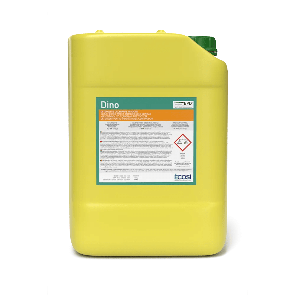 DINO è un detergente decerante assolutamente inodore per decerature parziali o complete e per la pulizia approfondita di pavimenti. Consente di eliminare strati più o meno vecchi di cera da superfici delicate e resistenti senza intaccarle, ingiallirle o decolorarle. Può essere utilizzato su linoleum, PVC e superfici resilienti, su marmo, cotto, graniglia, cemento quarzato e pietre.
