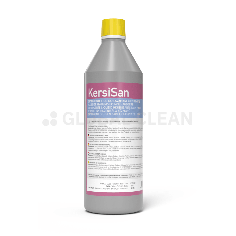 KERSÌSAN è un detergente liquido concentrato igienizzante, i cui principi emollienti garantiscono la pulizia e la protezione delle mani, conferendo alla pelle particolare morbidezza e igiene. La sua efficacia consente di asportare dalle mani anche lo sporco più resistente.