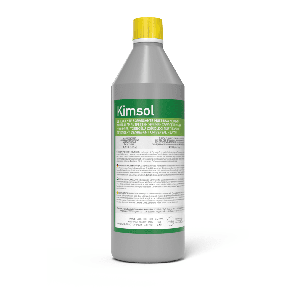KIMSOL è un prodotto ad azione sgrassante per la detersione di tutte le superfici dure, arredi, porte verniciate, infissi e accessori in alluminio. Può essere utilizzato sia in manutenzione ordinaria che straordinaria. Ad alte concentrazioni ha effetto decerante; a basse concentrazioni non necessita di risciacquo.