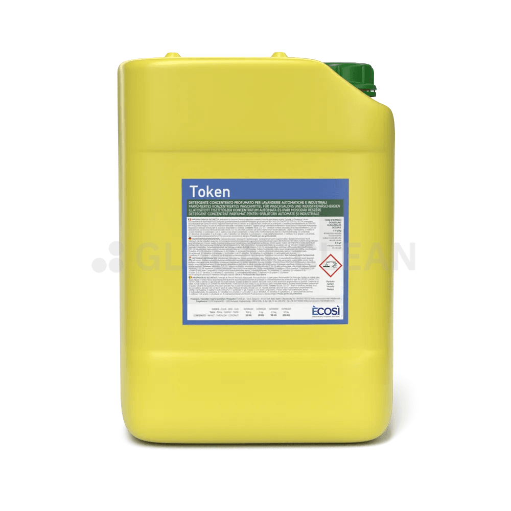 TOKEN è un detergente concentrato profumato ideato appositamente per le lavanderie a gettone. Efficace su ogni tipo di macchia e sicuro su tutti i tessuti, anche i più delicati. I suoi principi attivi emulsionanti distaccano lo sporco più tenace anche a basse temperature. In associazione al prodotto disinfettante AQUOXIL rispetta i colori e sbianca i tessuti.
